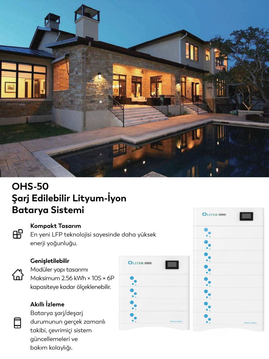 51,2 V / 50 Ah lityum demir fosfat (LiFePO₄) batarya sistemi, standart bir batarya modülüdür. Müşteriler, ihtiyaçlarına göre belirli sayıda 51,2 V 50 Ah modülü seri bağlayarak daha yüksek kapasiteli bir batarya grubu oluşturabilir ve uzun süreli enerji ihtiyacını karşılayabilir. Ürün; yüksek çalışma sıcaklıkları, sınırlı montaj alanı, uzun yedekleme süresi ve uzun servis ömrü gerektiren enerji depolama uygulamaları için özellikle uygundur.